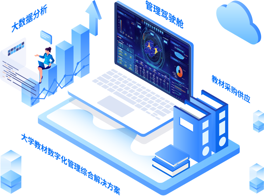 学校教材建设及流程管理;教材采购供应及预警管理;教材发行及双向溯源管理;全省教材征订及使用管理;